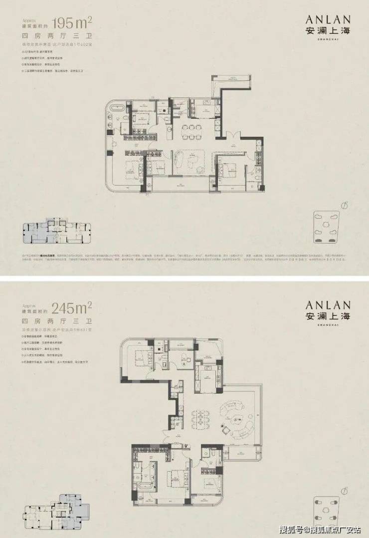 目前少量建面约195-245-280-370㎡奢阔大平层在售