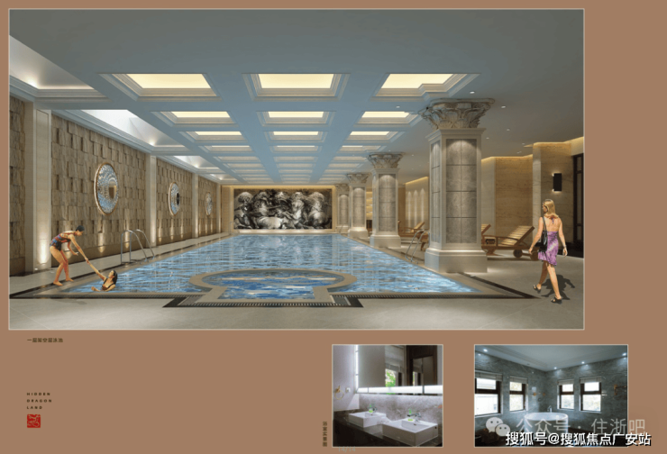 约250-380㎡私家室内泳池、约200㎡视频会晤空间,约220㎡套房式主卧,可容纳4-6个室内私家车位(以上均为建筑面积)