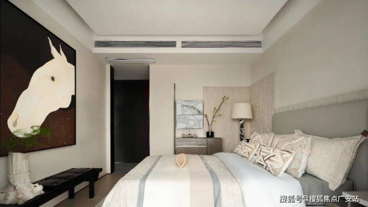 主卧以流畅的线条、醇厚的材质肌理,描绘一处静奢秘境。