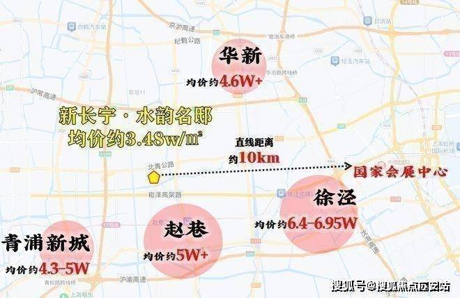 为什么说重固是价值洼地?还得从大虹桥说起,新长宁·水韵名邸所处的重固与虹桥核心区直线距离仅10公里左右,乘坐已通车的轨交17号线仅需6站即可直达大虹桥,而轨交沿线的赵巷、徐泾等大虹桥辐射板块房价已达5-6万,部分网红项目甚至超过7万元/平米!相比之下,2-3站外的新长宁·水韵名邸均价不足3.5万,潜力尽显!