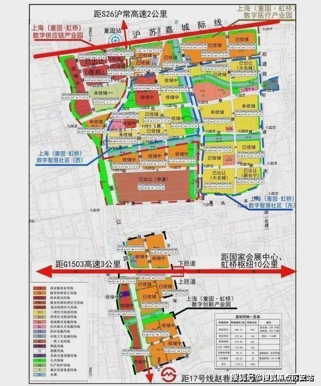 当然,重固也绝不是只靠大虹桥炒作概念的大饼板块!其板块自身实力和周边产业同样不容小觑!其中,重固南部就规划有虹桥无界百创城,聚焦数字经济,构建一核两翼,引领未来产业高地!