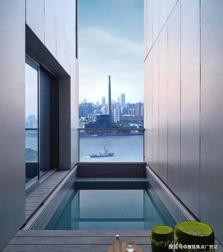 夜晚微风习习,躺在泳池之中,品一杯红酒,就可惬意俯瞰繁华上海滩。