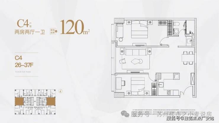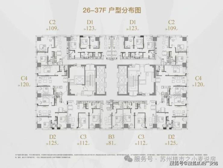 中区是26-37层,户型分别是80㎡,107㎡,120㎡,125㎡;