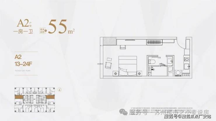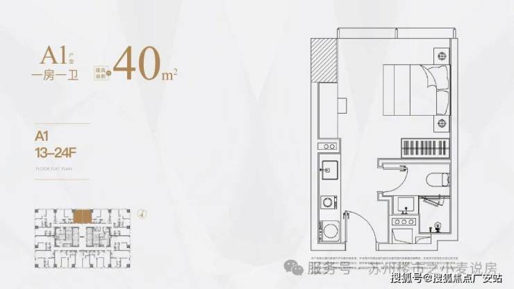 低区13-24层,户型分别是40㎡,55㎡,80㎡,107㎡;