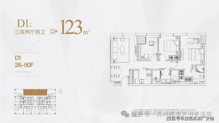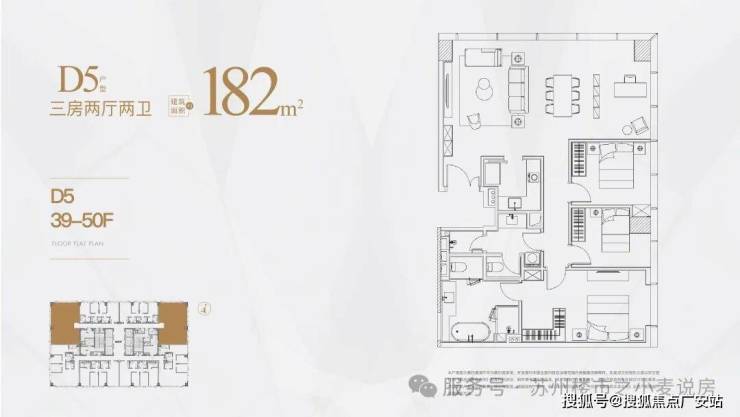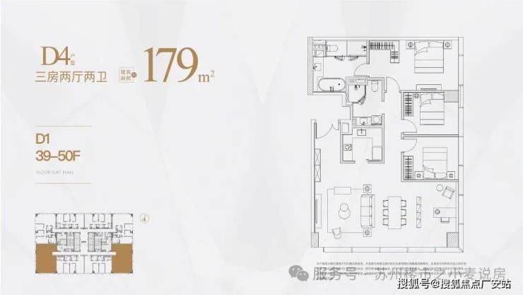 高区为39-50层,户型分别是125㎡,150㎡,180㎡。