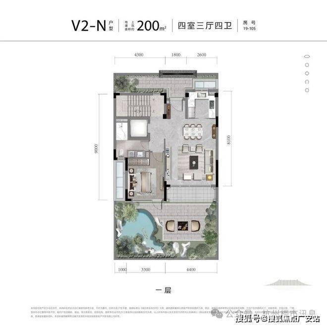 建筑排布南低北高,南区是2-3层的中式合院,北区是12-21层的高层,格局疏朗通透