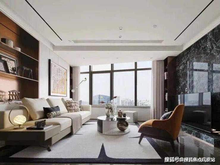 客厅270°采光面,配置弧形沙发,窗前可见上海经典三件套;