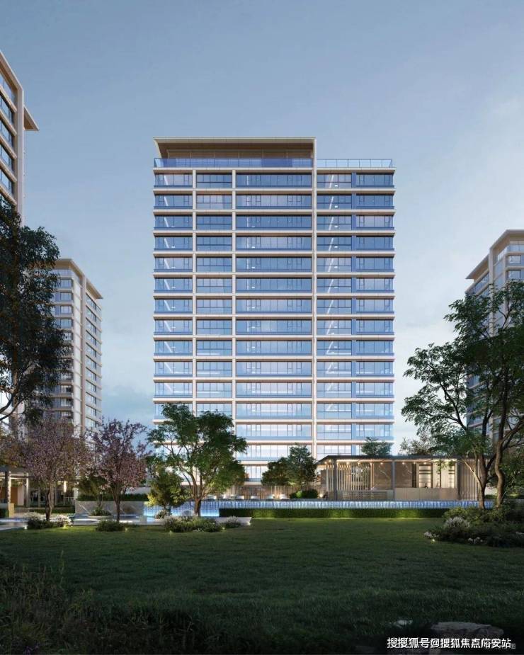 以一轴一带多境的格局,打造迎宾客厅、仪式水景、景观连廊、艺术水苑、森氧绿境、精装大堂六重归家礼序。
