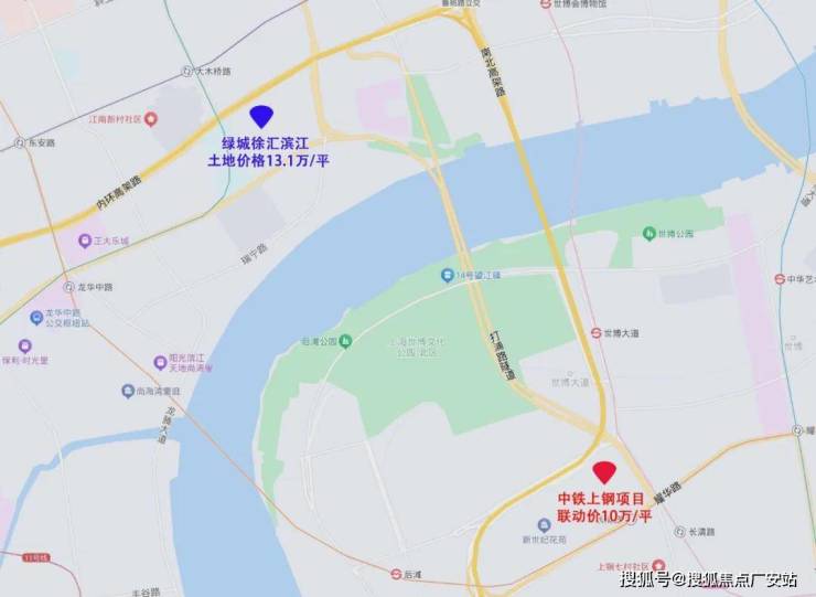 中铁·世博云境项目联动价只有10万/平,对比沿着黄浦江沿线以