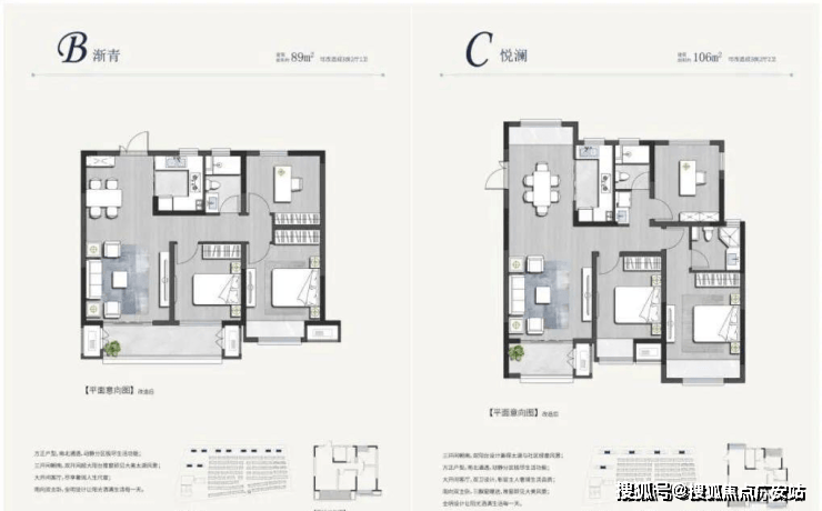 普通住宅:主力建面约89㎡(三居)、106-121㎡(三至四居)