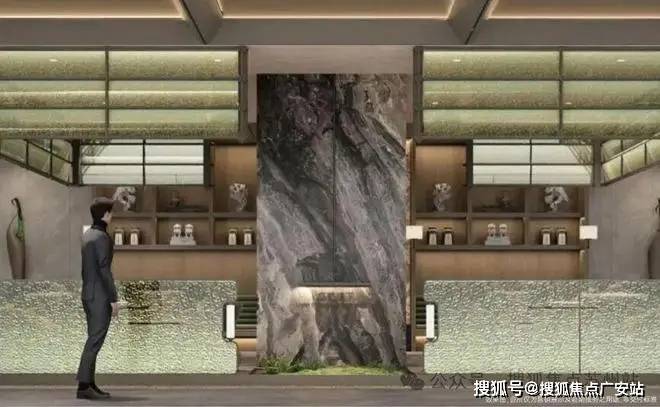 约110M超大尺度城市界面,仪式水景拾级而上,定制级艺术雕塑,酒店礼遇仪式侯迎隐奢归家。