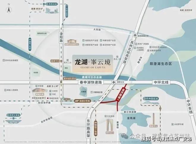咫此近享双轨(地铁7-延长线在建/8号线)、双环(中环北线/苏州北高架路)一隧(阳澄湖星济隧道-在建)、等全维立体交通,4站苏州北,6站抵园区,约10min至龙湖·相城天街,约15min直通高铁站,约22min畅达园区。