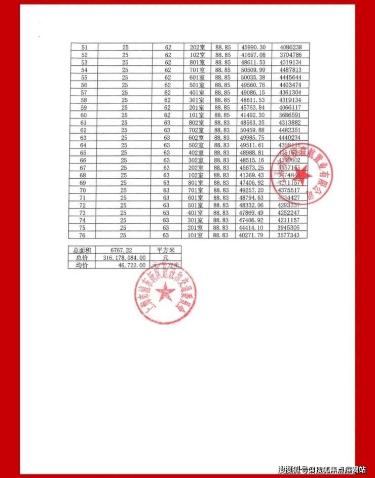 一房一价表: