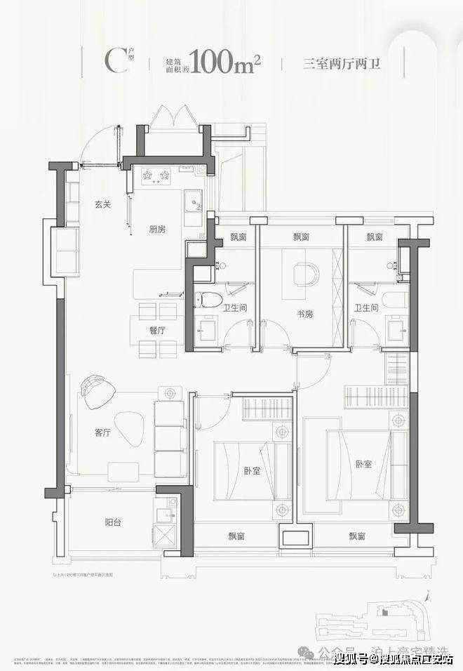 同等面积多一房:100㎡三房>100㎡两房,多一个功能间,未来出租 / 自住都更香