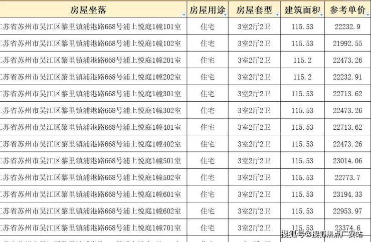 一房一价表如下