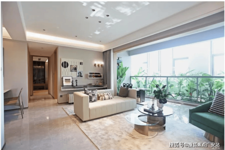 客厅与南向次卧阳台相连,面积达到10.56㎡,堪称跑道式阳台,在这里可以实现生活的更多可能。
