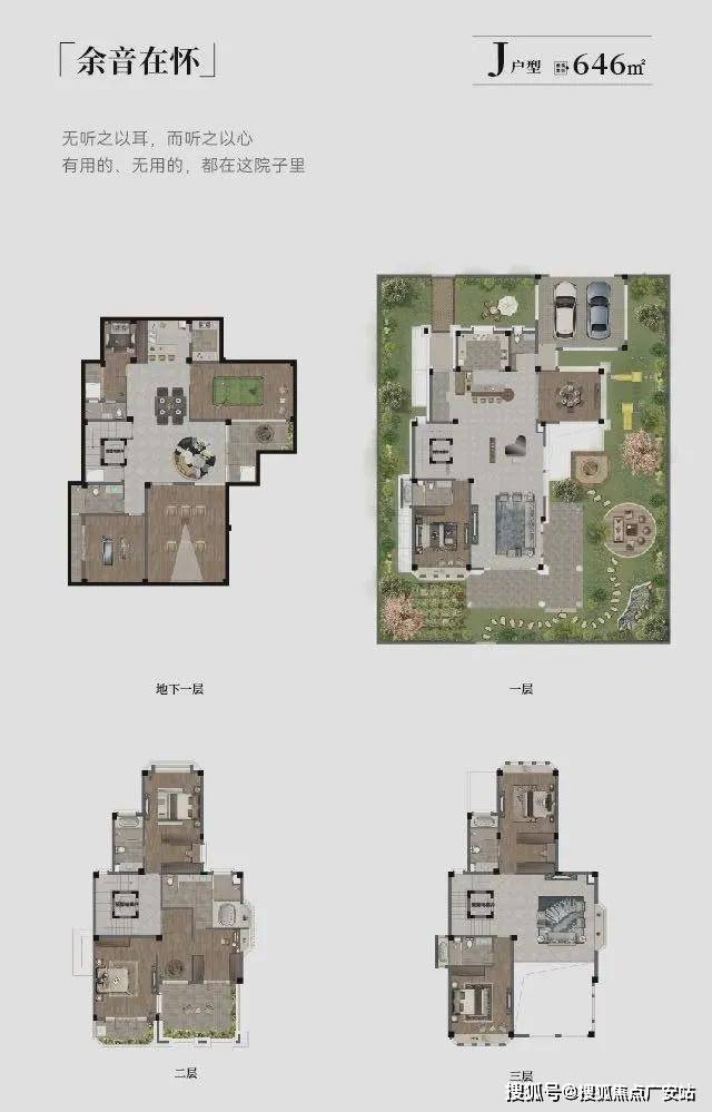 户型设计强调奢华与功能性,别墅产证面积383-646㎡(实际使用面积可达310㎡以上,含赠送面积),关键点包括: