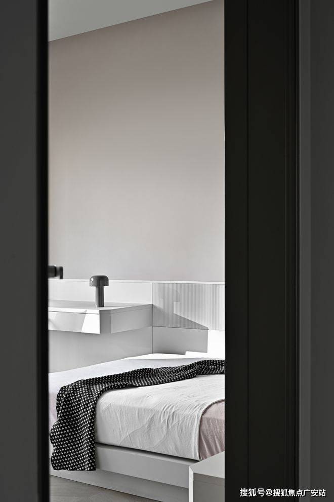 书房被藏在墙面的木色隐形门内,隐形门巧妙地在客厅与书房之间作了缓冲,避免白色“重叠”而造成疲劳感。