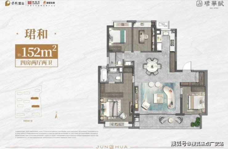 :152㎡、156㎡、190㎡、222㎡(均为四房以上设计,主卧套房化)