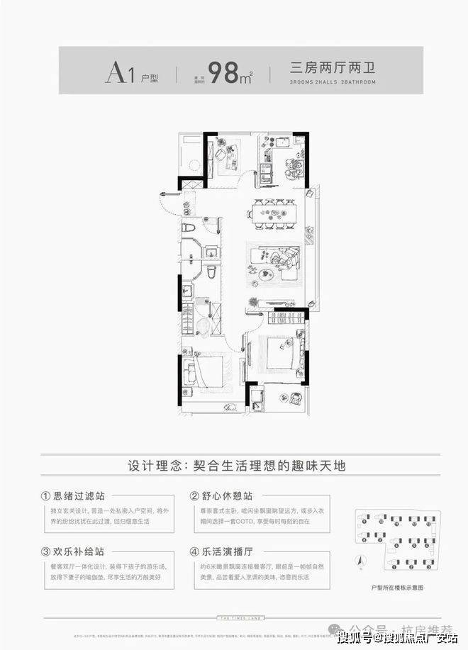 【面积段】:建筑面积约89-98㎡
