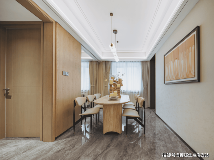 客餐厅净面积约30㎡,与市面125㎡户型相当;客厅净面宽约3.7米,采光充足、视野通透;餐厅空间充裕,可轻松摆放六人长桌或圆桌,大家庭聚餐无需局促,这是市面多数115㎡户型难以实现的。