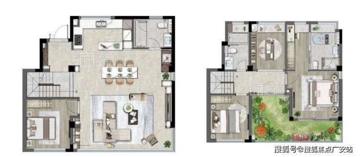 丨一层公共活动区域为主,客厅+厨房+餐厅+卫生间,带一个卧室