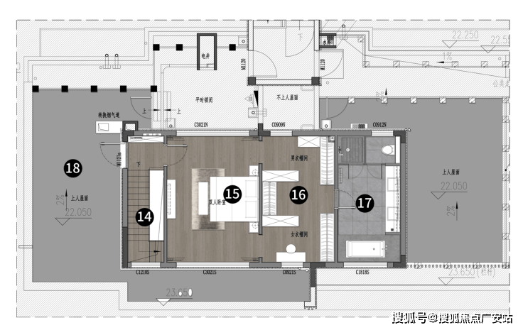 私区同样是南向双主卧套房,打造1+1双主卧套房系统,引入“主卧小家化”的主题概念,突破传统主卧套单一设计,兼备起居、睡眠、娱乐、衣帽储藏、主卫,双主卫更是实现了双台盆、独立淋浴间、独立蹲厕、浴缸五件套设计需求。让主卧真正成为私密性极高的专属领地。另外,双主卧套的设计更是为“四代同居”成为现实,主卧的空间尺度完全满足老年人日常起居生活需求。