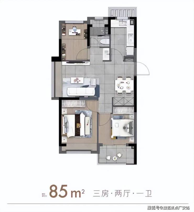 当这个城市的刚需者,也想博弈一套3房。国贸鹭原是用建面约85平方米户型,保留了初心。