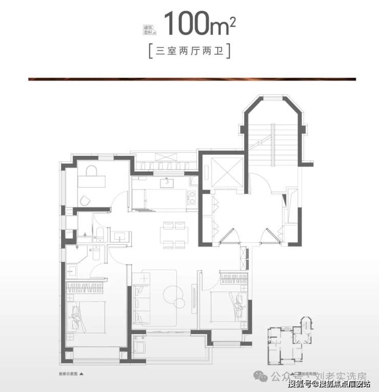 建面约100㎡户型设计得恰到好处!整个户型格局方正,也是当下颇受欢迎的飞机户型。