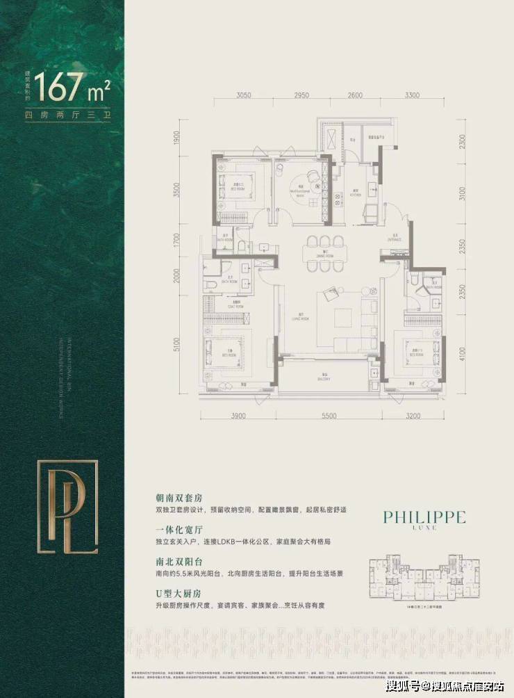 而建面约167㎡则是四房三卫格局,双套房设计,约40㎡的剧院式横厅,客餐一体,气场全开。市北、滨江的不少改善家庭,都在等它上线。