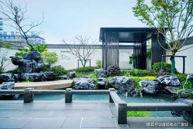 礼序的起点,在于入口。作为业主归家的第一道礼遇,总面积约900㎡的入口花园落客区,松石对称迎宾,中心环岛设置层叠水景,遵循高奢酒店无雨式落客设计,入口花园处,水景、形象墙、树阵等不同的组合方式,充分考虑到不同角度、不同时节的观赏效果,提升业主家人的归家仪式感、尊崇感。