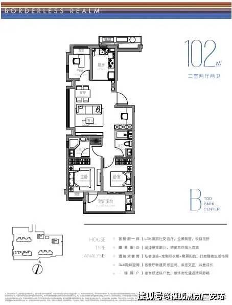 建面约102m²户型: