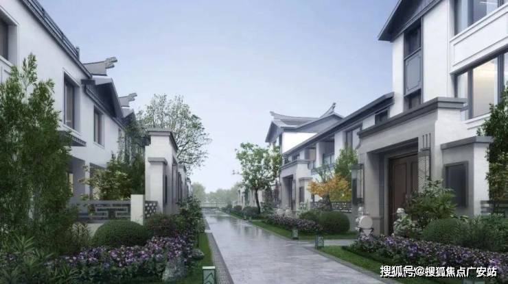 白墙黑瓦的视觉风格,中轴对称的大气格局,高地错落建筑造型,辅以亭台、叠水、乔木等中式景观布局,营造浓厚的中式宅院体验感。