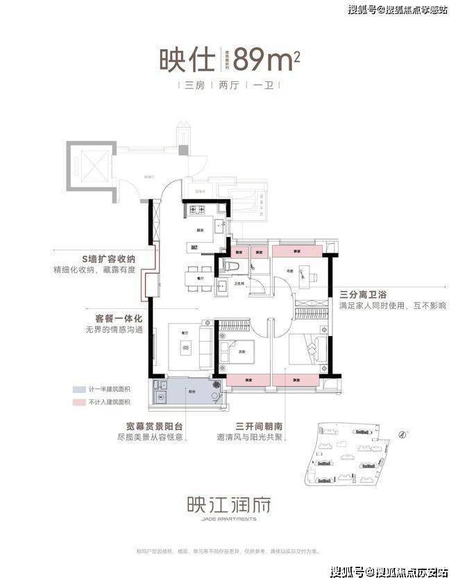 华润映江润府售楼处热线:400-8878-824建面约89㎡三房两厅一卫▼