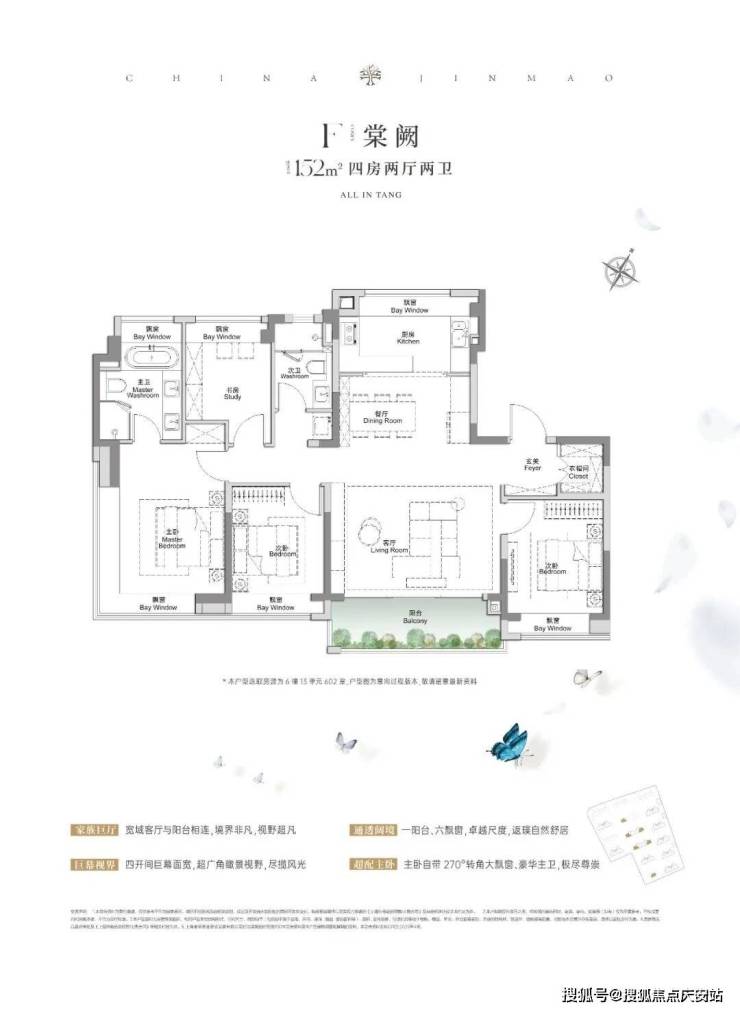 全景舱艺境美宅,标准层约3.1米层高、270度全景飘窗、LDKB一体化、南向跑道阳台、超12米南向全屏开间,无限视野尽收眼底,还有超金喜的满配精装,全上海只有央企金茂才能做得到。