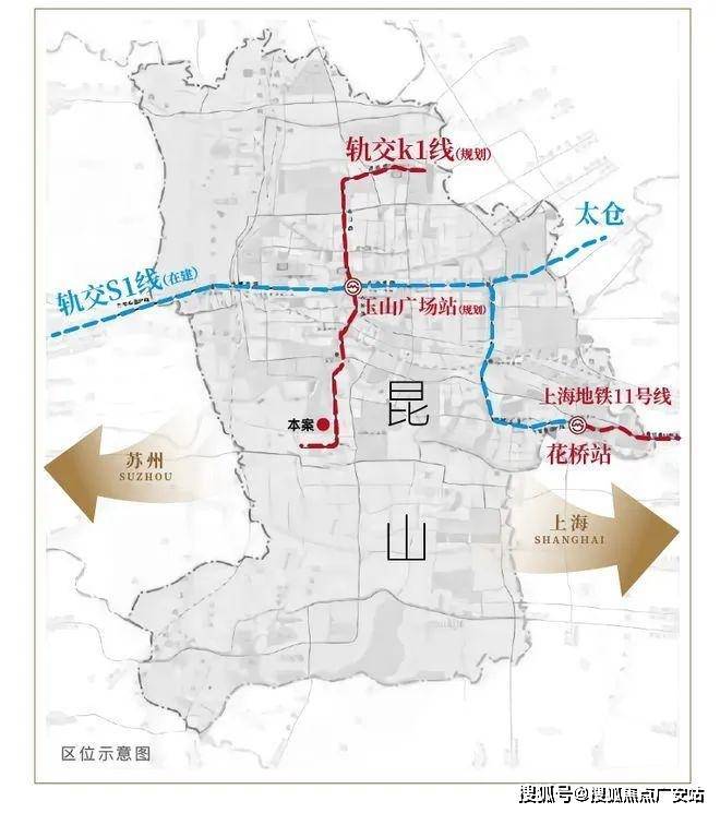 2、K1(规划)+S1(在建)快速联动长三角,邻张浦城市主干道亲和路,纵贯昆山南北;