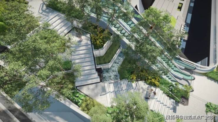 打造“三大花园·六大游园”体系,提供丰富的体验场景,而在楼王东侧就是三大花园的其中之一,也是艺术感最强的一个花园,将结合艺术装置和台阶,为业主提供舒适闲坐、眺望树冠景观的空中露台。