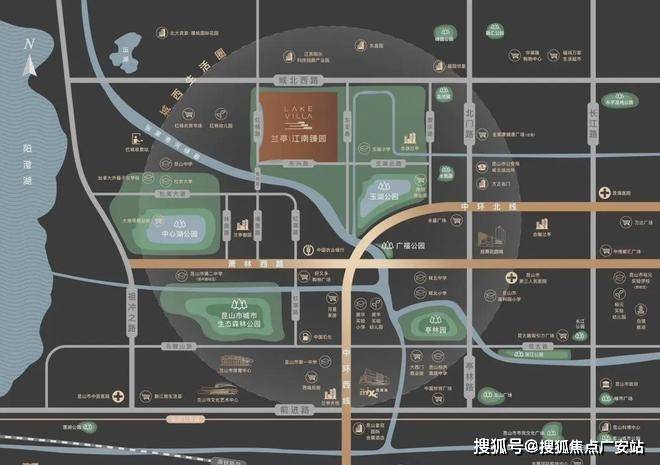 中心湖公园、昆山森林公园、玉湖公园等生态绿境在侧,氧护生活;