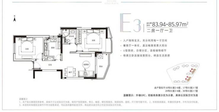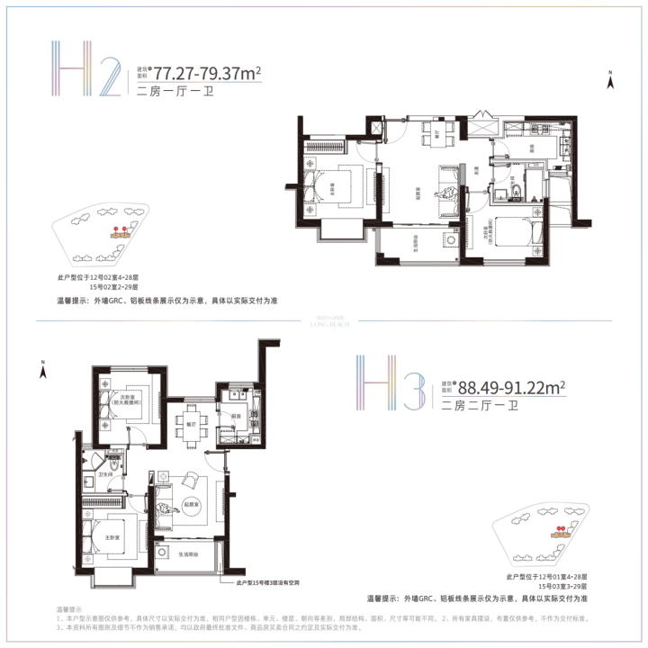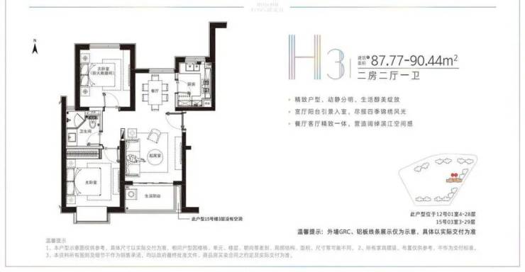 建面约78-91.22平米的小户型,两房两厅一卫的格局,非常适合年轻刚需家庭上车。