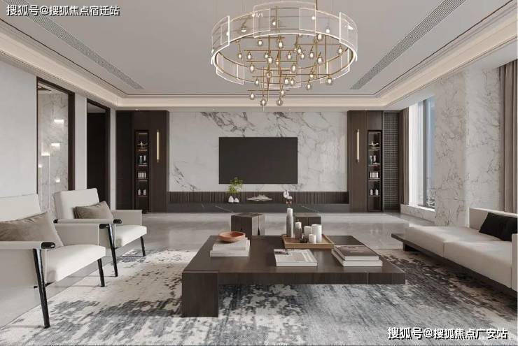 项目一层为星级酒店式大堂,层高约10米,全石材干挂、配中央空调,每层五梯三户配置。业主待客会友、从容出入间,尊崇气象顿生。