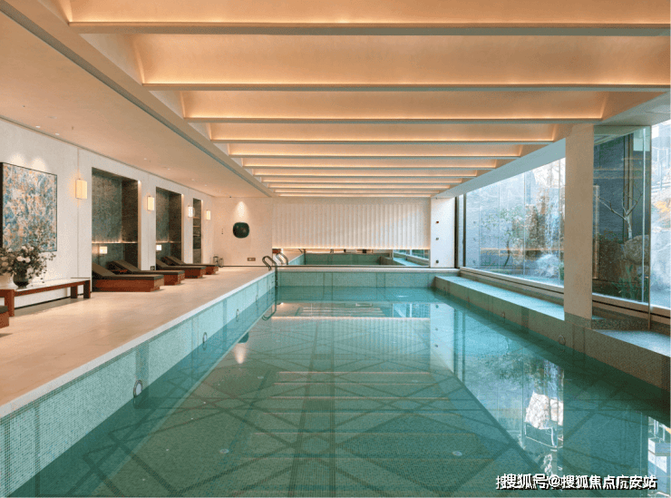 恒温泳池:采用全景落地玻璃墙,巧妙消融了室内与自然的界限。畅游其间,庭院山石如天然屏风倒映眼前,仿佛在自然山水间徜徉。