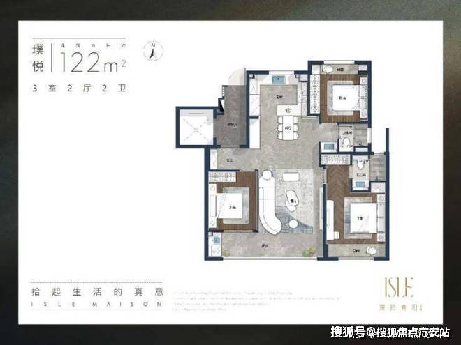 璞悦 | 建筑面积约122㎡三室两厅两卫户型