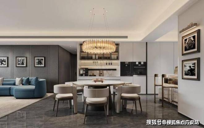 昆山璞拾青阳售楼处电话☎:400-8118-224(售楼处预约看房热线)【餐厨一体化】厨房G形布局,配置约3.5延米超长台面、0.8㎡钻石柜、宽大岛台;餐厅奢配约3米长通顶餐边柜与整体化橱柜,餐柜整体化设计,功能性更强。