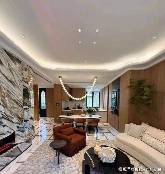 社区内设有上海风情的“三院”、海派精奢的三花园,让优雅的生活氛围随之铺展开来。下沉庭院整体长约18米,进深约9.5米,庭院的上下景观通过水帘相连通,中间结合有着层层叠水的水景,搭配水晶砖的景墙,将品质感拉满。