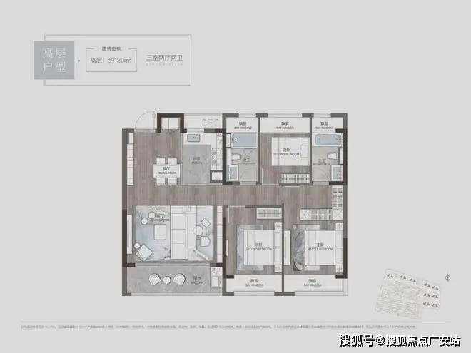 4开间朝南:南向3间卧室+大横厅实现4开间朝南,有更多的空间和采光条件为多个场景的生活确定条件。