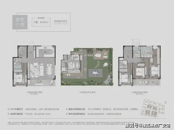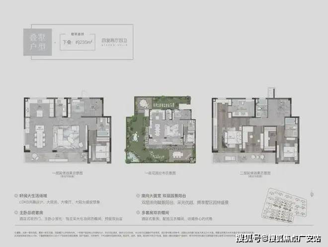 叠墅创新设计:下叠配备南北双花园(约100㎡),上叠带双层露台,全封闭精装楼梯间