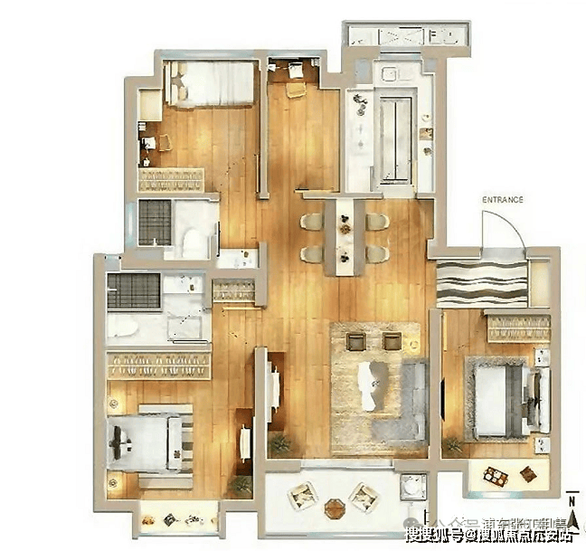 卧室:双朝南主卧,均带套卫与衣帽间。。 卫生间:三个卫生间设计,日常生活非常方便。。 其他:户型方正,南北通透,采光优越。。 阳台:南北均带阔绰阳台,室内采光通风极佳。。