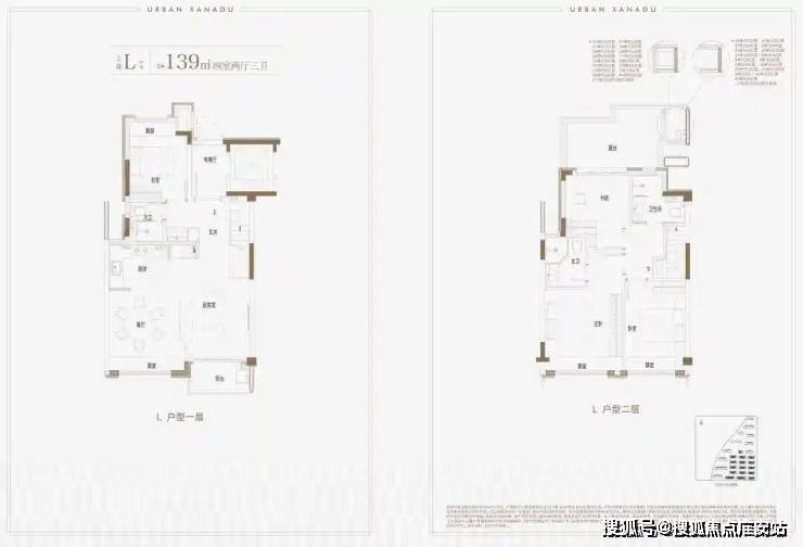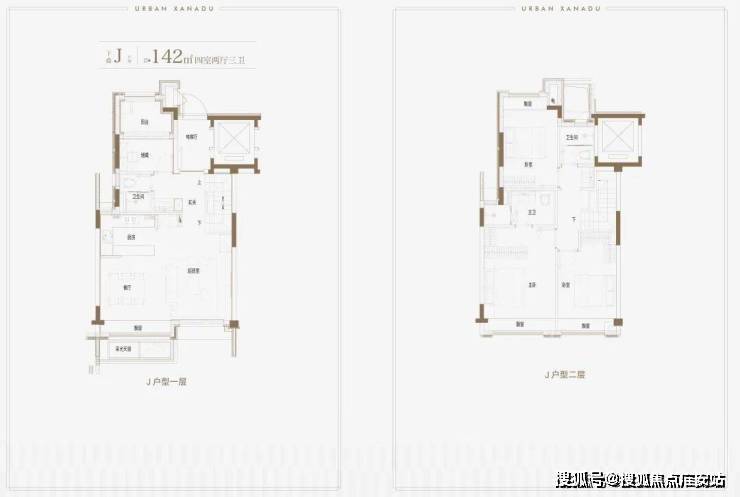 建面约139㎡上叠户型,三层是会客区,四层是居住区,阳台+露台+多个飘窗设计,附加空间非常大,在别墅类产品中实属罕见!