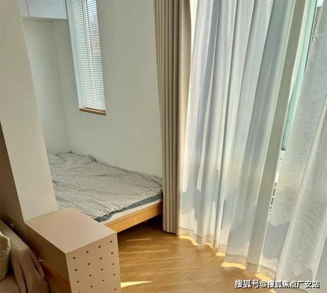 最关键的是,其中一间卧室,还是利用仅1米2的窄阳台强行塞下的,没想到装修完成后的效果却意外地不错,让人刮目相看。