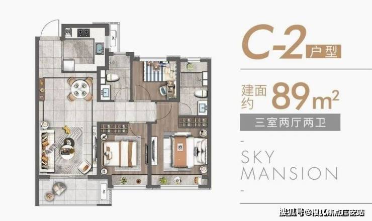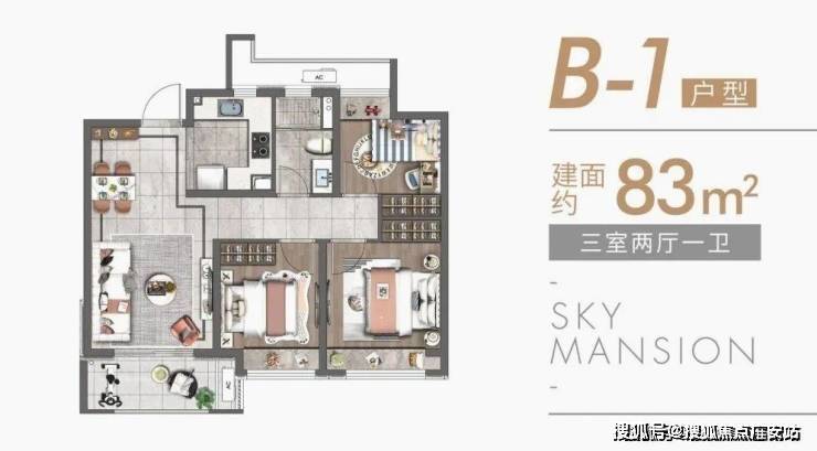上海宝山天铂建面约83~89㎡朗阔三居全能户型,动静分离,静谧舒适,每1cm的考究,都映射着每一个人居的诉求